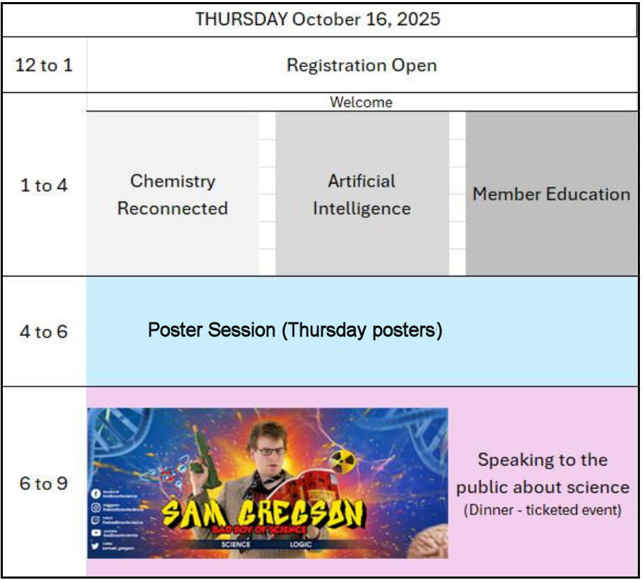Thursday Evening: Dinner presentation featuring Dr. Sam Gregson, particle physicist the University of Cambridge and CERN, AND award-winning science educator and entertainer ($40; 50% student discount with valid ID)
